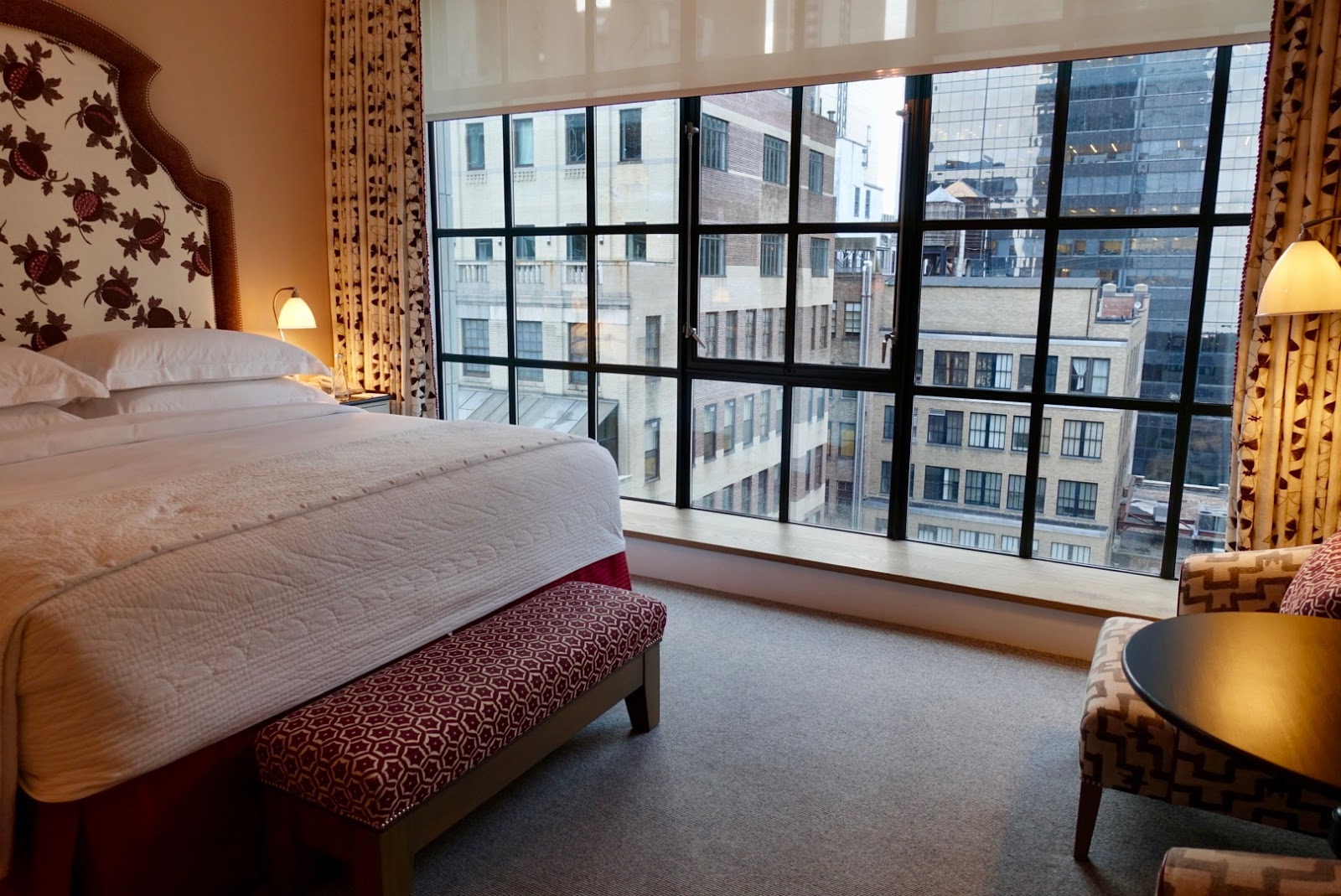 There are two things I liked here better than at The Whitby Hotel. This is about the seat cushions on the window sill and the great view of lower Manhattan on higher floors.